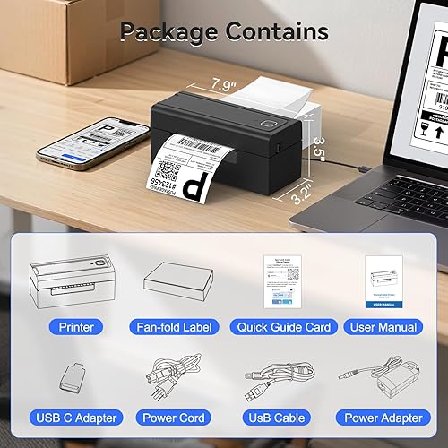 Versatile for Home & Business - Compact yet powerful, this thermal printer is suitable for online sellers, retail shops, offices, and warehouses. It prints shipping labels, barcodes, inventory stickers, and product tags efficiently. As a reliable label printer for small business, it helps streamline operations and improves workflow across different environments