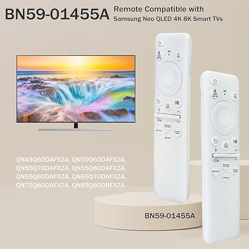 【BN59-01455A Remote Compatible】We know how frustrating it is not to have a good remote control, so we bring you this BN59-01455A VG-TM2360S Solar Voice Remote, which is compatible with a wide range of models, some of which are as follows:Compatible with the new 2024 models of Samsung Neo QLED 8K Smart TVs such as QN43Q60DAFXZA, QN50Q60DAFXZA, QN55Q70DAFXZA, QN55Q80DAFXZA, QN55Q60DAFXZA, QN65Q70DAFXZA, and QN75Q60DAFXZA, QN85Q60DBFXZA. More specific models can be found on the For more specific models, please press “Ctrl+F” on the computer page. If you are not sure if it is available, please leave a message and let me know, we are always here to help