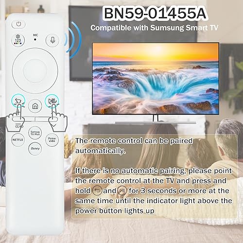 【BN59-01455A Remote is easy to pair】BN59-01455A VG-TM2360S Solar Voice Remote simply press and hold the back and play/pause buttons at the same time for 3 seconds or more to start pairing. Pairing has begun” will appear on your TV screen. Once paired, you can use your voice to search for content, change channels, adjust volume and more by speaking into the remote control; enjoy hands-free navigation, searching and commands for a truly intuitive viewing experience. Dedicated shortcut buttons for Netflix, Disney+, Prime Video and more are also available for one-touch operation, save your time and trouble