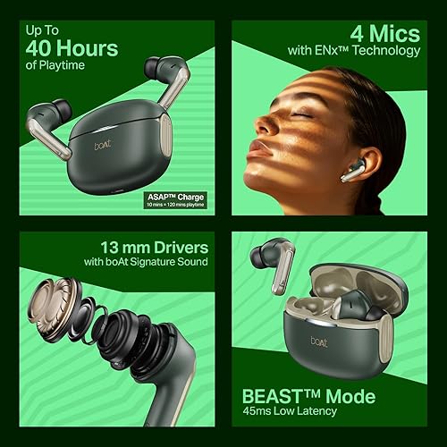 boAt Airdopes 219, 4Mics ENx Tech, 40 Hrs Battery, Best in Segment for Calling, Free Music Streaming,13mm Drivers, Bluetooth Earbuds, TWS Ear Buds Wireless Earphones with mic (Forest Sage)(Forest Sage)