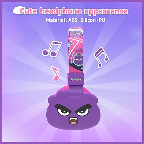 Booma Echo Wireless Stereo Headphones for Kids, Over Ear, Foldable, Fun Characters (Pink)(Purple)