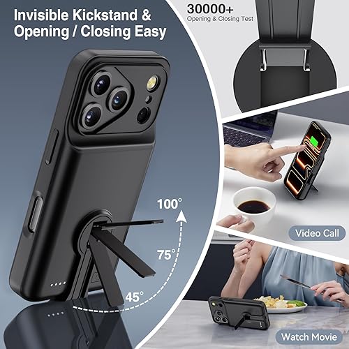 BOPPS 2025 New Battery Case for iPhone 17 Pro Max with Stand,Ultra Slim 8500mAh Portable Rechargeable Strong Protective Extended Charger Cover for iPhone 17 Pro Max Charging Case-6.9inch Black(iPhone 17 Pro)