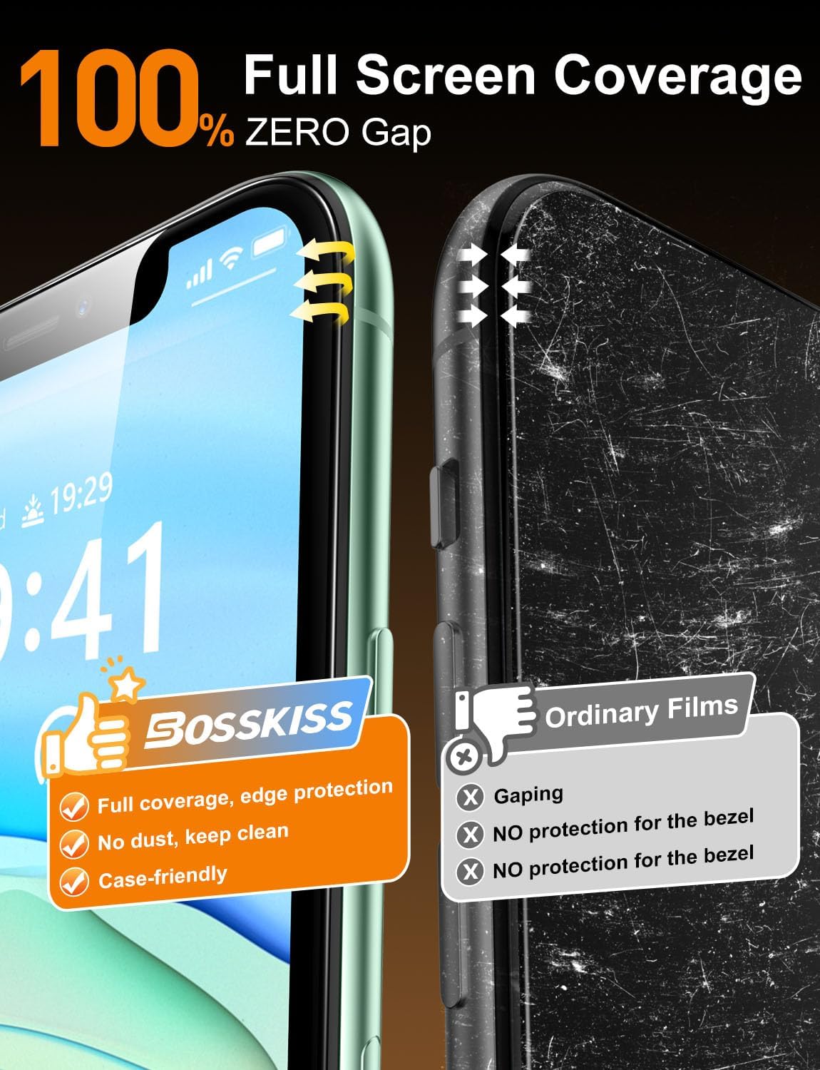 【24H Professional Customer Support】Customer satisfaction is BOSSKISS service tenet! This package includes 2 iPhone 12/iPhone 12 Pro screen protector, a dust-free installation tool, and a cleaning kit. If you have any questions during use, please contact us. Rest assured, we will provide you with a satisfactory solution