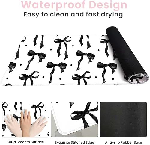 Bow Mouse Pad, Pink Bows Desk Mat Cute Pink Desk Accessories, Non-Slip Rubber Base Gaming Mousepad Bow Keyboard Mat for Laptop Computer PC, Desktop Mat Office Decor for Girls Women 23.6 x 11.8in(Black,23.6" x 11.8")