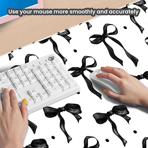Unique Design for Girls: Larger mouse pad with cute coquette bows design exclusively for girls and women. Elaborately stitched edges make this desk mat for office sturdy and durable. You can use it as a mouse pad for working, also a desk mat, mouse mat, desk blotter, drawing & writing pad, or a coquette decor to desktop. Our bow mouse pad can help you work effectively and smoothly, decorating your office pretty, radiant and enchanting