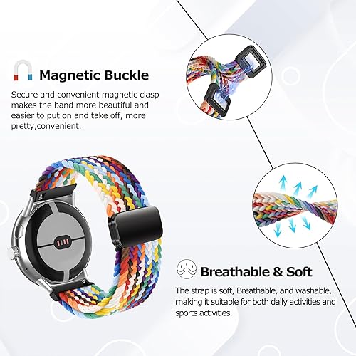 Braided Watch Band Compatible for Google Pixel Watch 4 (45mm), Magnetic Buckle Strap, Breathable Soft Nylon Elastic Sport Wristband for Pixel Watch 4 45mm(Rainbow)