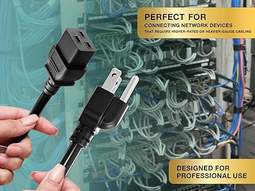 VERSATILE COMPATIBILITY: Equipped with a NEMA 5-15P male plug and IEC320 C19 female connector, this 3 prong power cord is compatible with a wide range of devices including servers, high-power computers, PDUs, UPS systems, and other equipment requiring a C20 inlet. It's an excellent power cord replacement for various electronic devices.