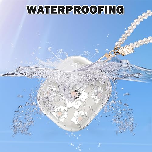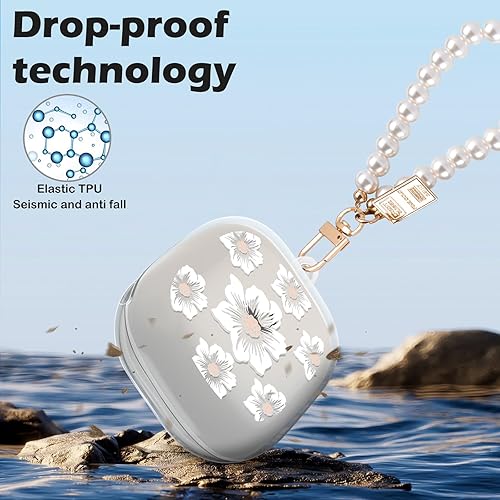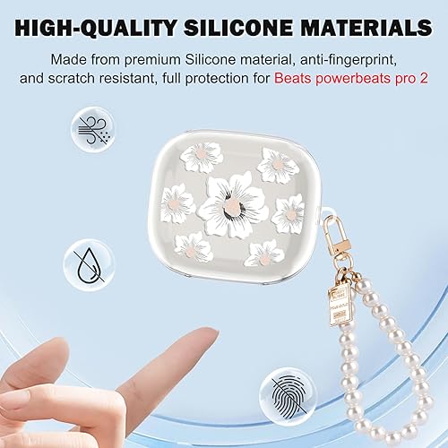 CameCosy Transparent Case Compatible for Beats Powerbeats Pro 2 2025 with Pearl Bracelet Keyring, Silicone Cover with Cute Strawberry Pattern for Girls, Shockproof Waterproof Anti-Scratches Anti-dust(White Flowers)