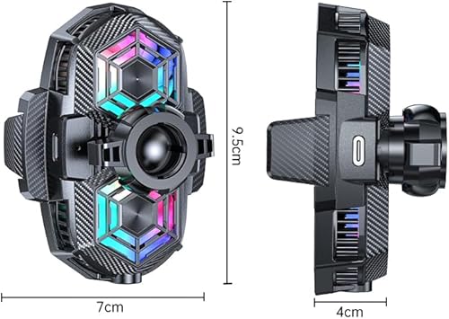 Car Cell Phone Holder Mount with Dual Semiconductor Cooling Fan, Scalable Cell Phone Cooler Car Stand Radiator with Light