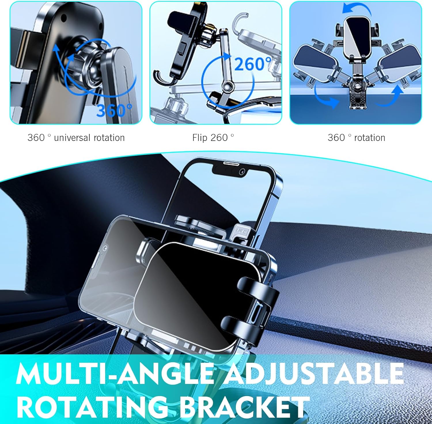 360-degree universal rotation: This 360 dashboard phone holder features a 360-degree universal rotation function, allowing drivers to easily adjust the direction and position of the phone according to their needs and viewing angle. Whether viewing navigation maps or watching videos, you can find the most suitable viewing angle, providing great convenience and comfort.