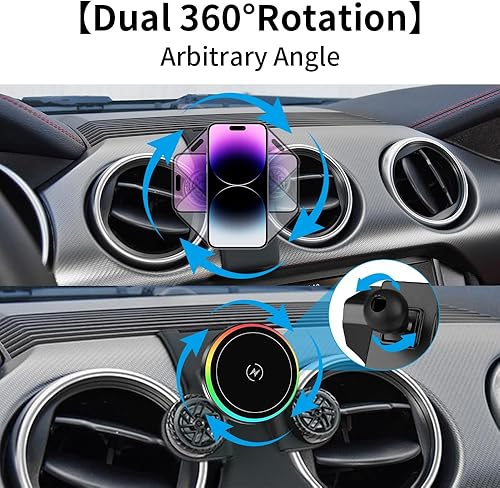 Car Magnetic Phone Mount for Ford Mustang 2015 2016 2017 2018 2019 2020 2021 2022 2023 Auto Interior Accessories Best Cellphone Holder Fast 15W Wireless Charger Cell Phones Charging Stand(for Ford Mustang 2015-2023)