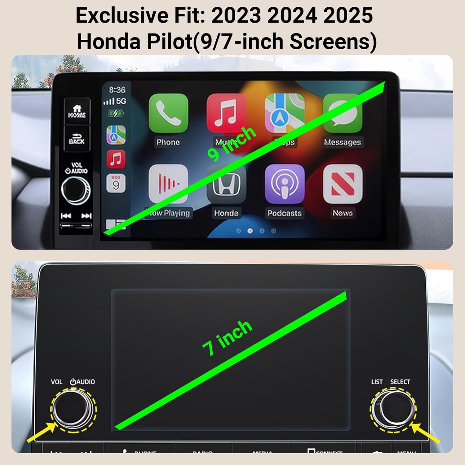 Compatible Devices: 2023 2024 2025 Honda Pilot (LX/EX-L/TrailSport/Touring/Elite/Black Edition) (9/7 inch screen only)