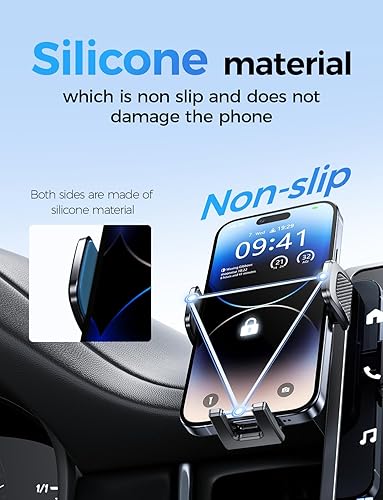 Unparalleled stability ensures safe driving:5mm thick silicone pad to care for the love machine Thickened lower wall anti slip design.Dual robotic arms+dynamic structure, firmly grip the phone, unable to shake it off, quickly locks the phone in 1 second of contact, and does not shake during any bumps.