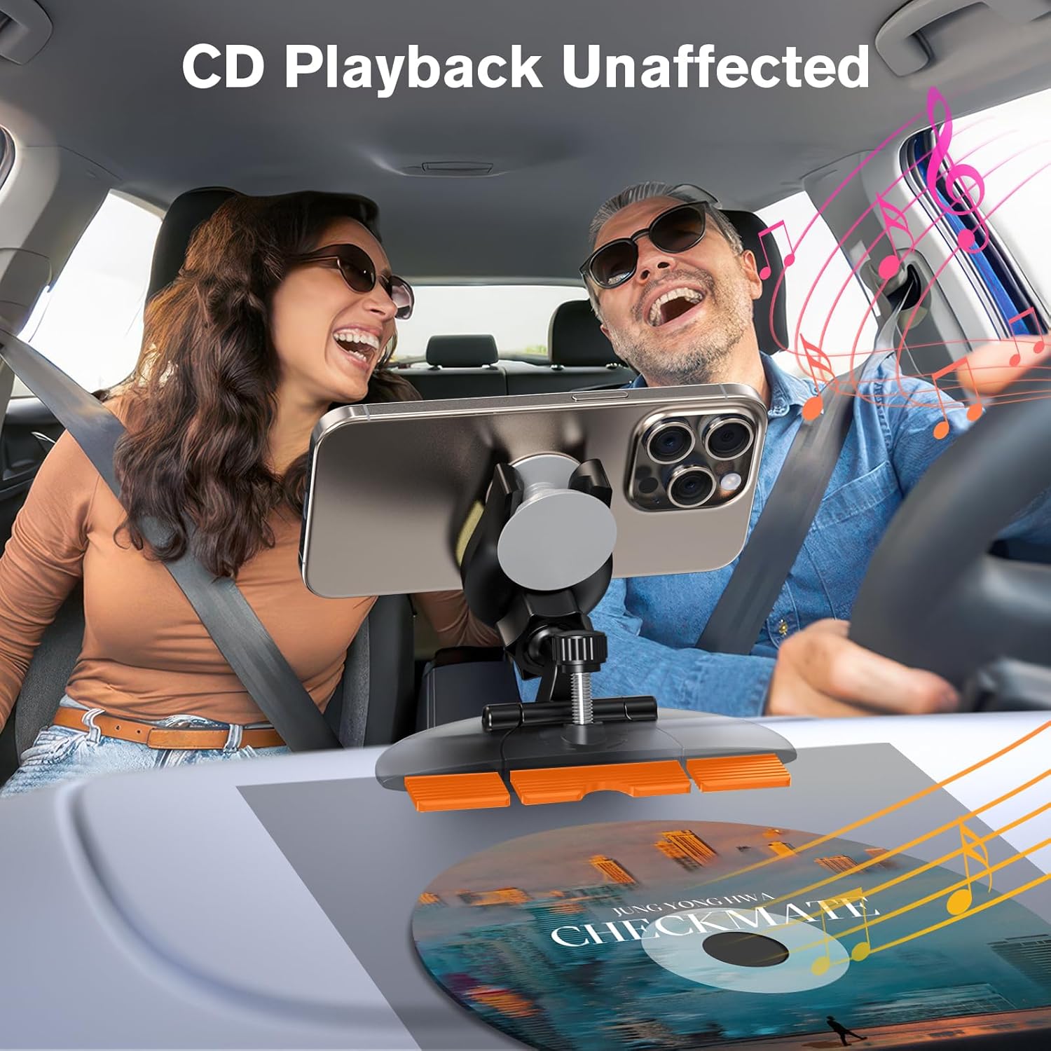 【Provide Unobstructed View】: Bring the better viewing and operating experience. The 360° rotating ball head of the phone mount for car allows you to easily adjust your mobile phone to any desired angle, that it also won't affect the use of the CD player and air vent.