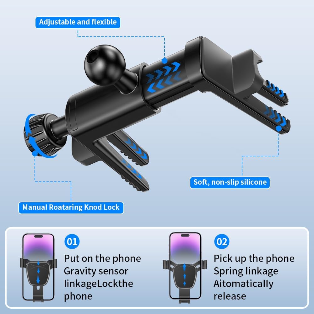 ✅Gravity linkage, Place your phone with one hand, Place firmly.