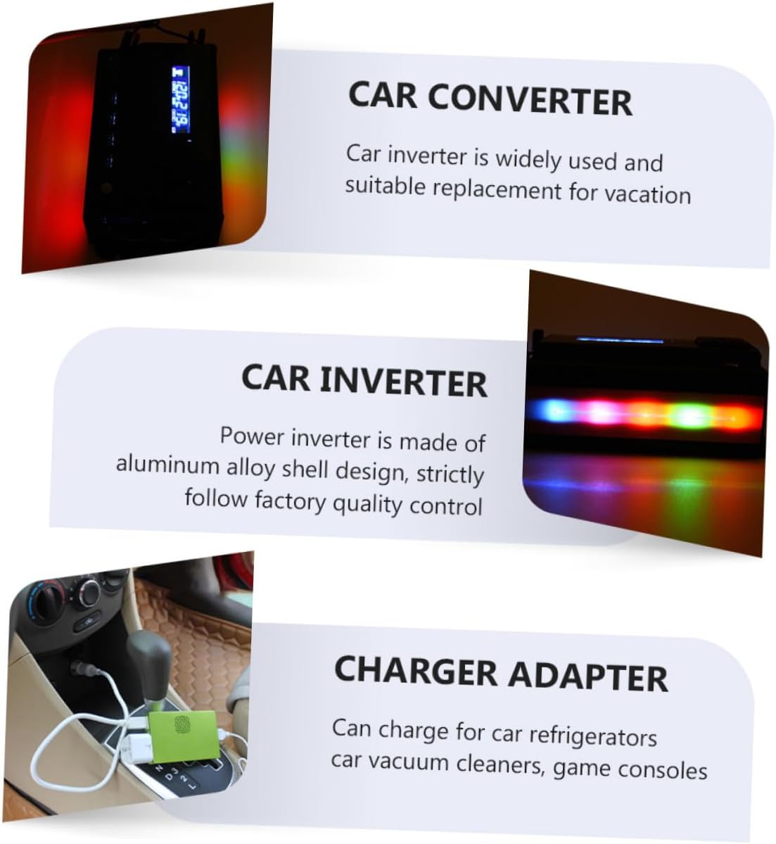 Charger adapter:car inverter is widely used and suitable replacement for vacation, travel, camping and other occasions,Car Converter