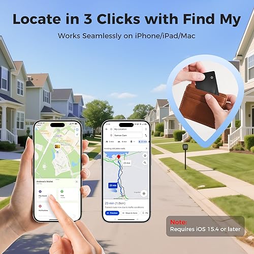 【ULTRA-SLIM & FITS ANY WALLET】 At only 1.8mm, this tracking card is as thin as a standard credit card (85x55mm), making it the perfect slim wallet tracker. It slides seamlessly into any men's wallet, passport holder, or card case without adding bulk. Natively integrates with the Apple Find My network—no third-party app required. (Requires iOS 15.4 or later).