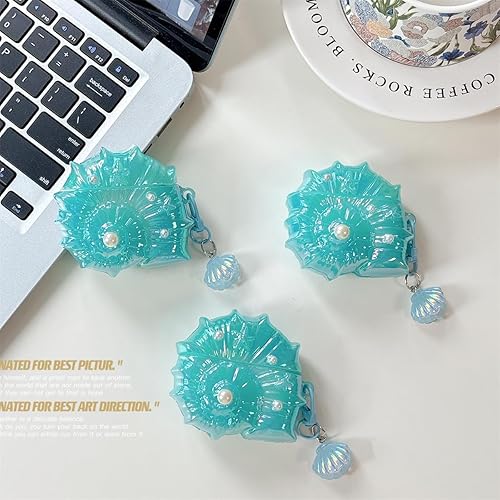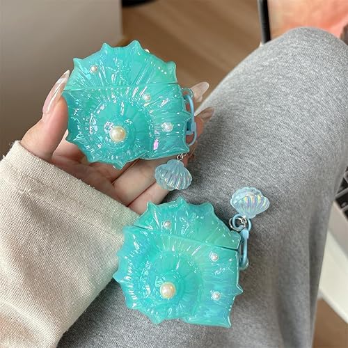 Case for Airpods 4,Cute Fun Creative Glitter 3D Conch Seashell Design Shockproof Earphone Cover with Kawaii Pendants for Girls Women (Pink-A)(Blue-A)