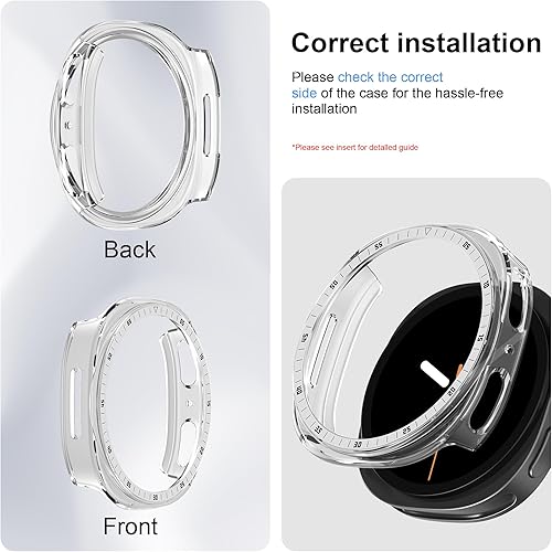 【Sensitive Touch】 Ultra-thin galaxy 8 watch cover maintains galaxy watch 8's original response sensitivity, ensuring quick app launching; Galaxy watch 8 screen protector 44mm snap onto your device simply, buttons are easy to touch. No need to take off the case when charging the watch.
