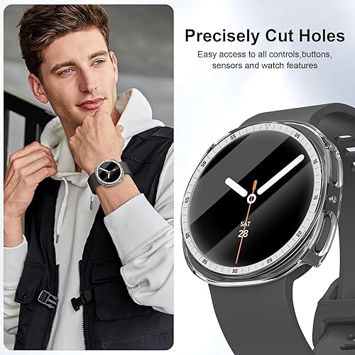 【Premium Material & Full Protection】 for samsung galaxy watch 8 case 44mm 40mm is made of quality PC, which is lightweight and fits perfectly. Easy to put on and take off. Full cover protective galaxy watch 8 44mm screen protector provides daily protection against scratches and reduce chances of damage to your screen from impact forces and drops.