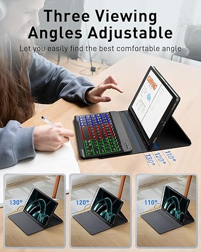 ⌨【Magnetically Detachable Rainbow Backlit Keyboard】Case for Samsung Galaxy Tab S10 Lite / S10 FE / S9 FE / S9 / S8 10.9-11 inch comes with a removable 7-color rainbow magnetic keyboard. The ultra-thin, lightweight magnetic keyboard attaches securely to the case, helping the tablet stand upright and turning it into a mini laptop in a second. Use the selectable backlight mode to choose your favorite color from 7 iridescent colors for smooth typing in the dark, even when working at night.