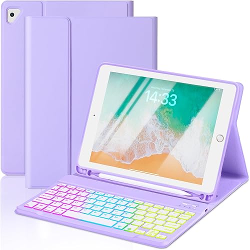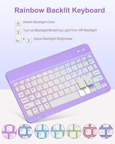 【Rainbow Backlight, Multi-Function Keyboard】Suitable for iPad RGB rainbow backlight Bluetooth keyboard, 7 adjustable backlight colors, breathing light backlight mode can be automatically switched. The backlit keyboard can be used in the dark, providing a comfortable typing experience. Rich function shortcut keys allow you to use iPad more efficiently & comfortably, such as editing documents, navigating applications, creating presentations.