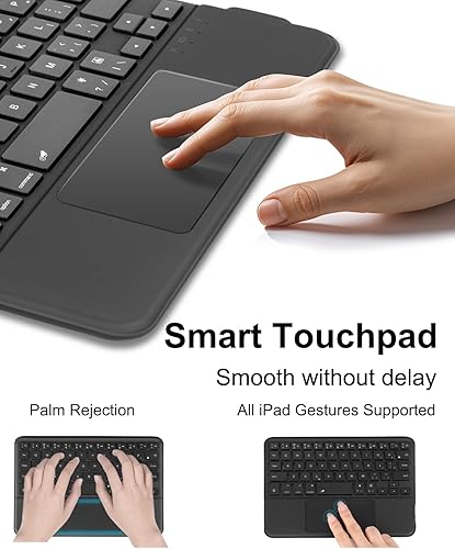 【Skin Feeling Materials & Rechargeable Keyboard】Made of premium PU fabric, it fully protects the case and brings a smooth touch to your fingers. The keyboard can be charged for 2-3 hours and can work continuously for up to 100 hours (without backlight). The keyboard will automatically enter sleep mode to save power if not used for 15 minutes. Click any key to wake up immediately