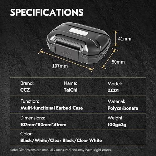 Easy to Open & Carry Small in size but large in capacity: Dimensions is10.7cm x 8.0cm x 4.1cm(4.21inch x 3.15inch x 1.61inch). The TaiChi comes with a safety strap, portable design,can be hung or carried by hand, suitable for outdoor, travel, daily commuting, and more. The earbuds carrying case provides plenty of space for iem cable, iem ear tips, wired earbuds, in ear headphones and all sorts of small electronic gadgets