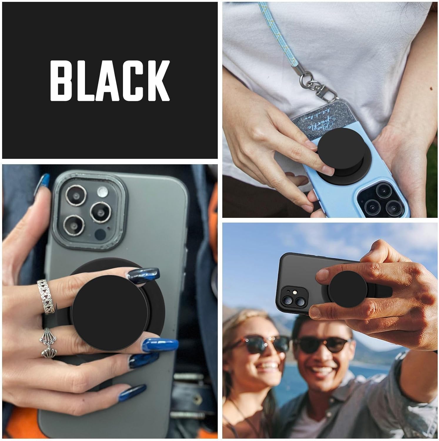 Cell Phone Accessory Compatible with Magsafe Magnetic Black Collapsible Mobile Phone Grip Stand Holder for Smartphone Tablet(Blank Black)