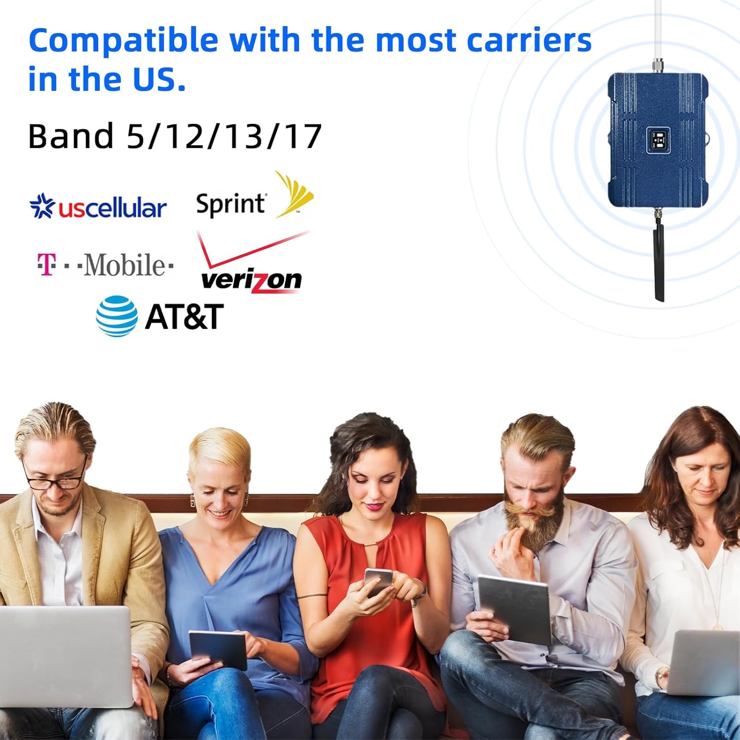 All U.S Carriers & 5G Compatible: Cell phone booster for home supports all US carriers, work on bands 5/12/13/17. cell phone signal booster compatible with the latest 5G and 4G LTE technology, supports multiple devices simultaneously. Aid to eliminate weak signal areas, continuously provide you with a reliable cellular connection, no more dropped calls.Tips: If you want to use 5G, please make sure your area provides 5G service)