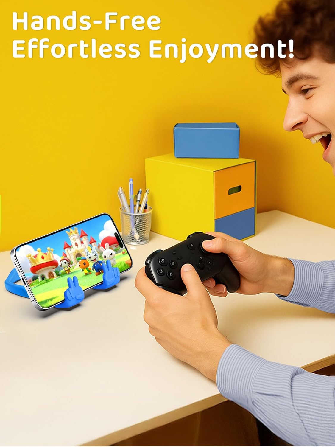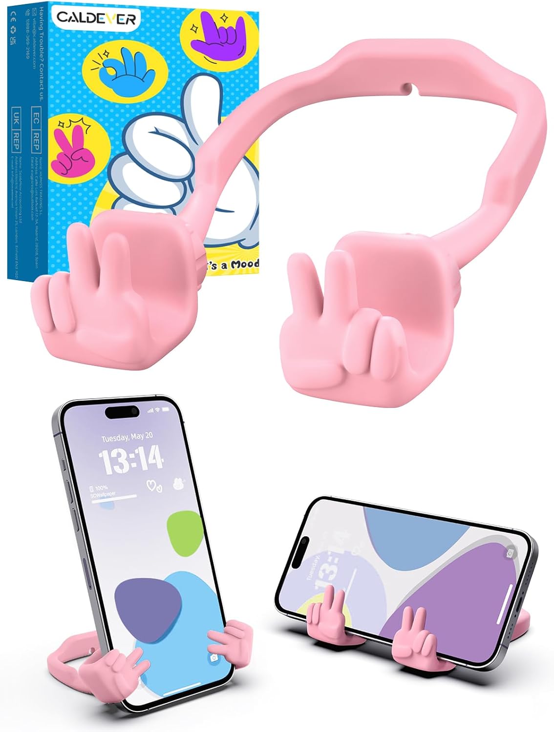 Patented 360° Rotation & Adjustable Angle Phone Holder for Desk: Discover unparalleled viewing flexibility with our CALDEVER peace sign thumbs phone stand, featuring an exclusive 360-degree rotating head and unique adjustable wrist angle; Seamlessly switch between horizontal and vertical screens, finding your perfect 0-40° viewing angle for any task; This universal cell phone holder ensures ultimate stability for your phone or iPad mini, making it the ideal phone stand for desk or table