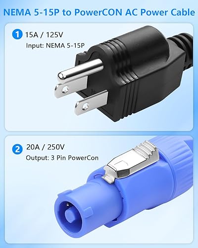 Plug and play, convenient, made of integrally formed wire,sturdy and durable,with good contact performance. This 3-pin NEMA 5-15P to PowerCon cable ensures reliable power delivery to your professional audio devices.
