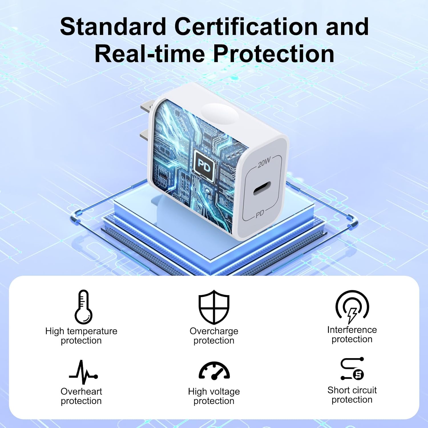 Safety Protection: iPhone 17 charger cube built-in smart IC chip, with the confirm connection system to prevent against short circuit, over-current, over-voltage, over-heating and over-charging. Supports multiple charging protocols to optimize maximum charging speed for your iPhone 17 Pro Max and google pixel 10, meet your charging needs in different situations, charge your devices in anytime and on anywhere.