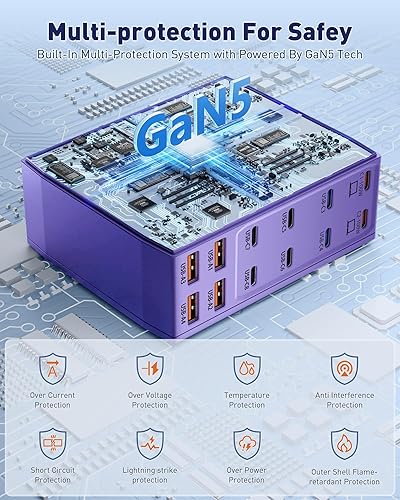 【12-in-1 USB C Charging Station】This 600W USB C Charger Block comes with 8 USB C ports and 4 USB A ports to charge multiple devices, simplify your charging setup, and let you experience the convenience of ultra-fast and ultra-high output charging. With its smart charging technology, it can automatically detect and provide the best power output for each connected device, ensuring fast and efficient charging.
