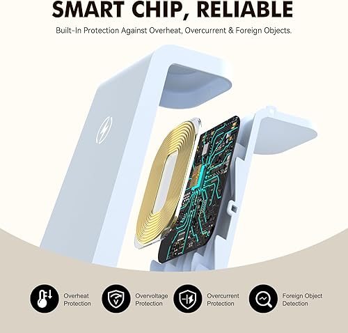 Distraction-Free Charging with Smart Indicator Light Display: White indicates Standby, Blue indicates Charging, Red indicates FOD Alert. All indicators auto-off after 10s. Making it an ideal for iPhone and iwatch charging station for bedrooms or sleep-friendly nightstands.