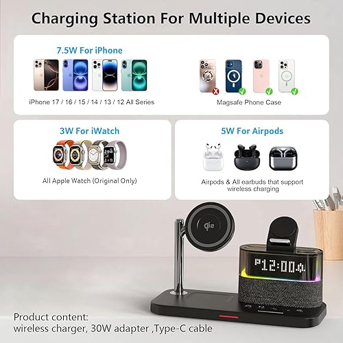 Included Components: 1*33W Adapter, 1*5 in 1 Wireless charging station with clock, 1*Type-C Cable, User Manual