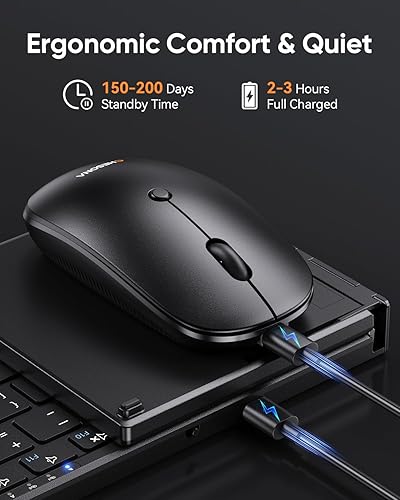 【Ergonomic Mouse】: The mouse is ergonomically designed for a more comfortable grip, tilt reduces wrist strain. Switch between silent office (800DPI) and precision gaming (1600DPI) modes.