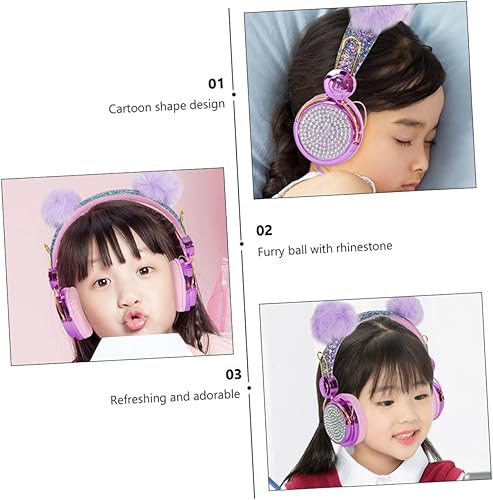 headphones:furry ball with rhinestone and glitter design, refreshing and adorable,cute wired headphones