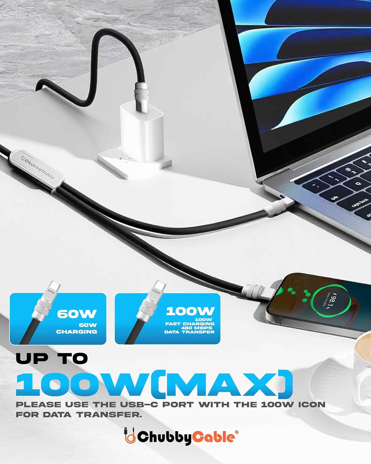 2-in-1 USB-C Charging Cable: With its dual-connector design, you no longer need multiple cables for different devices; ChubbyCable’s 2-in-1 USB-C cable lets you charge two devices at once, perfect for business trips, vacations, or anyone carrying a smartphone, tablet, or even the new iPhone 17 Series