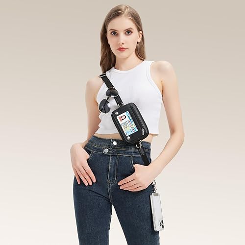 Clip and Go Strap for Phone with Wallet Crossbody Adjustable Phone Lanyard with Detachable Wristlet Wallet Phone Strap(Black)