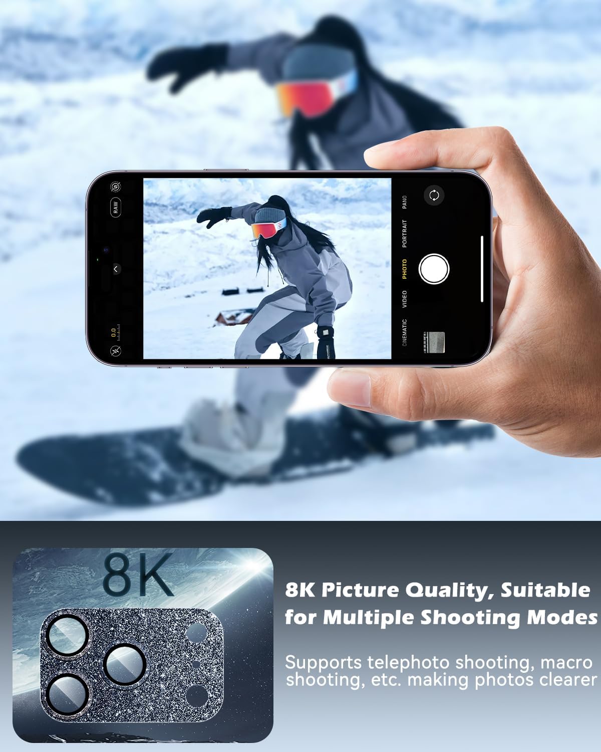 【Flashy Design, More Stylish】The exquisite 3D metal/flashy design produces a charming reflective luster under any light. The 3D lens cover ring complements your fashion style. You can use lens protectors of different colors to decorate your 17 pro, making it a personalized decoration while protecting your camera lens. You can also give it to your partner, friends, mother, or students, and they will love this shiny gift.