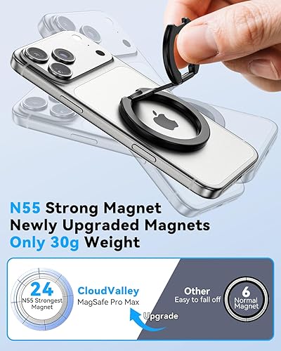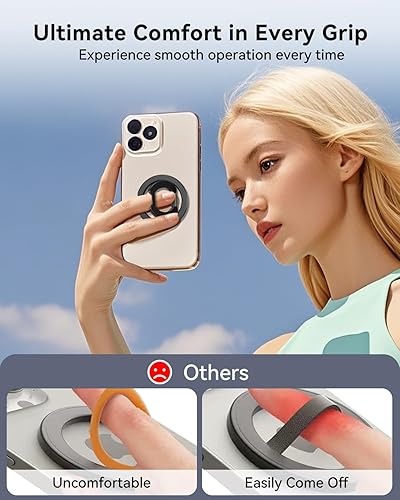 【Wide Compatibility】Our magnetic ring holder attaches directly to iPhone 17/16/15/14/13/12 series, without the need for a MagSafe-compatible phone case. Non-magnetic phones or regular phone cases are compatible with this MagSafe ring holder after attaching the included thin metal ring (it needs to sit for 24 hours).