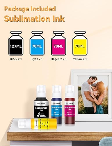 High compatibility:CMYBabee Sublimation Ink Refill Bottles Compatible for Epson Sublimation Ink ET2400 ET2720 ET2760 ET2750 ET4800 ET-2800 ET-2803 ET-2850 Inkjet Printers Heat Press Transfer on Mugs T-Shirts