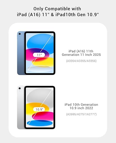 【Compatibility】: Only Design for iPad (A16) 11th generation 2025 11 inch (Model: A3354, A3355), and iPad 10th generation 2022 10.9 inch (Model: A2696, A2757). Note: NOT compatible with any other iPad models, please check your iPad Modle No. before purchasing
