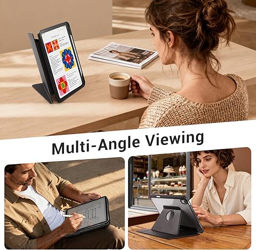 【Magnetic Multi-Angle Stand】 Strong magnetic design provides stable support at every angle. Five adjustable angles and the ability to switch between horizontal and vertical screens let you move effortlessly between tasks—typing, drawing, reading, watching movies—without slipping or loosening. Whether it’s vertical screen for handy reading or horizontal screen for broad movie views, your iPad stays exactly where you need it