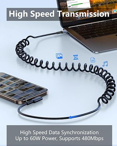 Wide Compatibility: Coiled USB C Cable compatible with iPhone 17/16/15 Pro Max, for Samsung Galaxy S25 S25+ S25 Ultra S24 S24+ S24 Ultra S23 S22 S21 S20 A53 A14, for Moto, for LG, for Pixel; And other usb c devices.