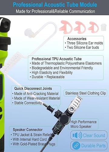 Clear Sound Transmission: With professional acoustic tube module, high quality micro speaker, noise reduction microphone, high purity copper wire cable and anti-Interference circuit design and our great assembly skills, this earpiece ensure sound to be received and transmitted clearly even in loud environment.