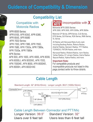 Warranty & Compatibility: 12 months worry-free warranty; Compatible with Motorola APX XPR 6000 XPR 7000 SRX series radios; Including APX 900, APX 1000, APX 4000, APX 6000, APX 6000LI, APX 6000XE, APX 7000, APX 7000XE, APX 8000, APX 8000XE, APX 8000H, APX 8000HXE, XPR 6100, XPR 6300, XPR 6350, XPR 6380, XPR 6500, XPR 6550, XPR 6580, XPR 7300, XPR 7350, XPR 7380, XPR 7550, XPR 7580, XPR 7350e, XPR 7380e, XPR 7550e, XPR 7580e, SRX 2200 and more.