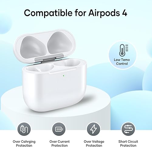 【5 Times Full Charge】:Build-in 680mAh batteries provide 5 times full charges for your AirPods 4th. Fast charge earbuds, just 15 minutes in the case and provide you with 3 hours of listening time. Replacement AirPods 4 Charging Case