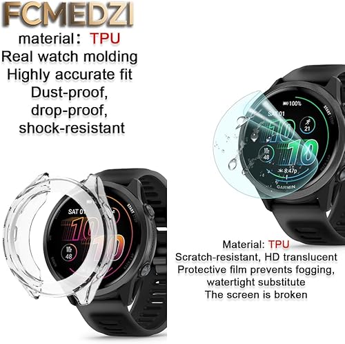 [Compatibility] Specifically designed for the Garmin Forerunner 570 47mm, including 4 screen protectors and 2 soft frame cases. Not suitable for any other models. Please check your new Garmin Forerunner 570 47mm model and size before purchasing.
